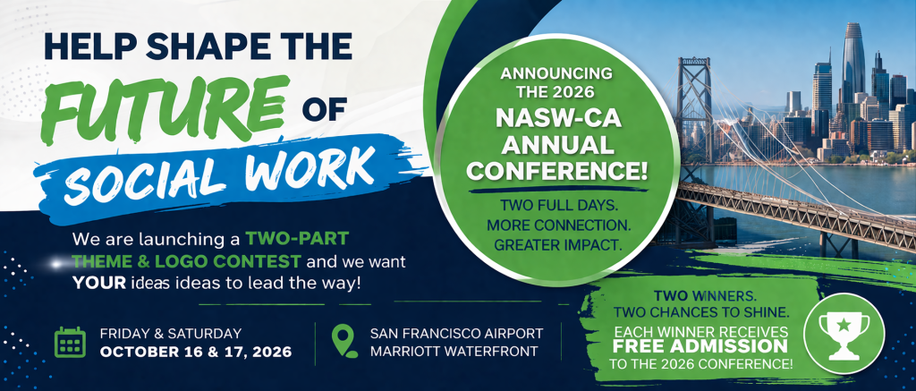 NASW-CA is inviting members to help shape the branding for the 2026 Annual Conference through a member driven competition. This is an opportunity to highlight creativity, increase engagement, and make sure the conference theme and visual identity reflect what is most meaningful to our community.